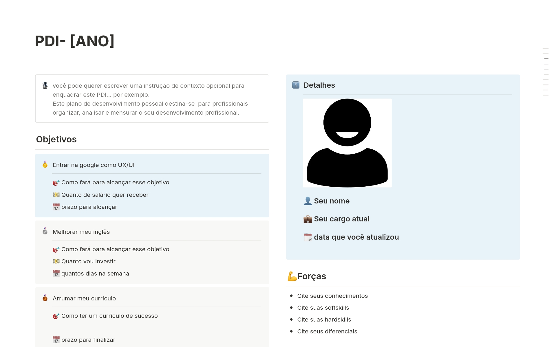 Com esse Template de PDI, você pode estruturar seus objetivos, identificar habilidades a desenvolver e acompanhar sua evolução de forma organizada e eficiente! 🚀