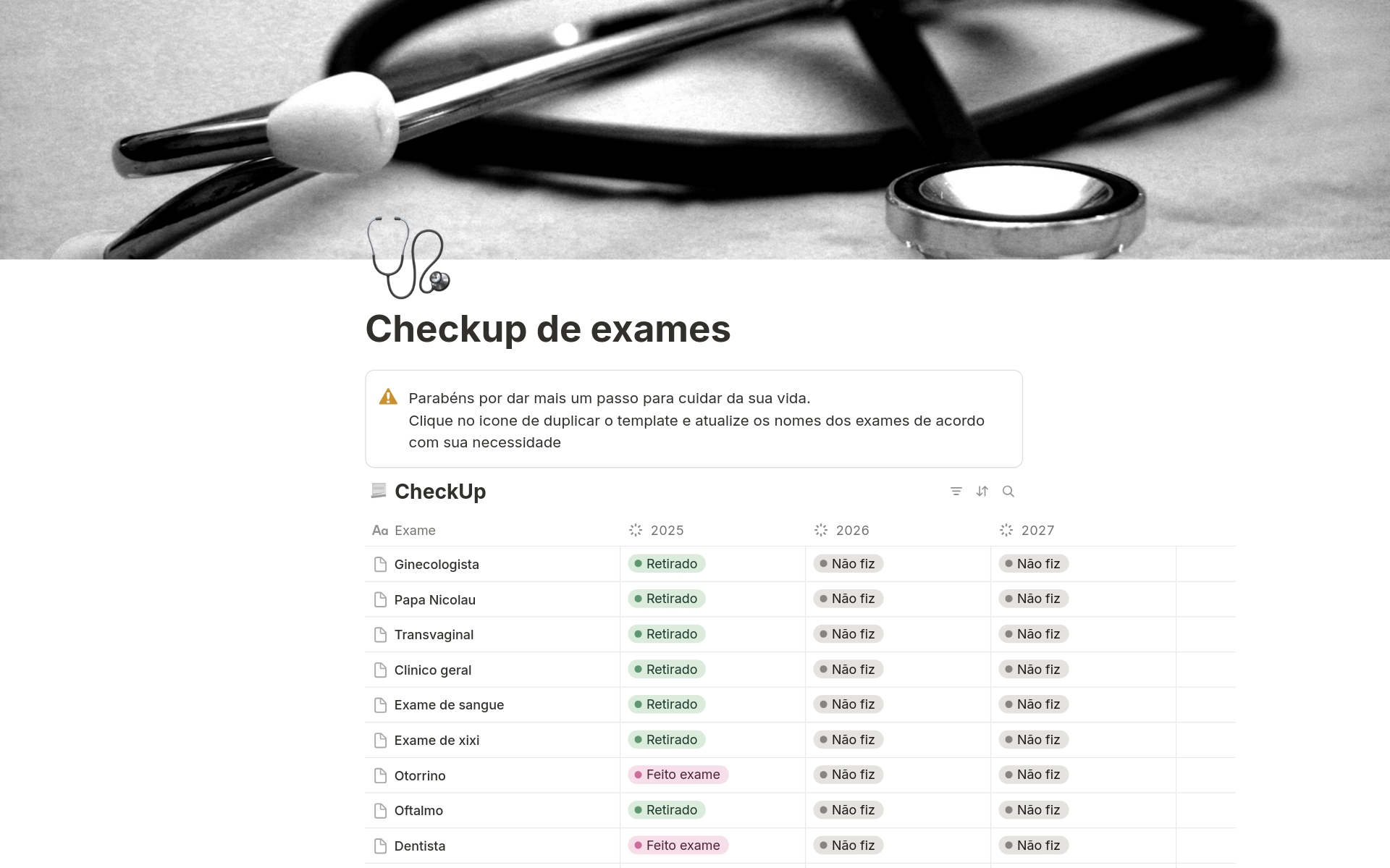 Liberado GRATUITAMENTE esse template no Notion pra te ajudar a manter seus exames organizados ano a ano.